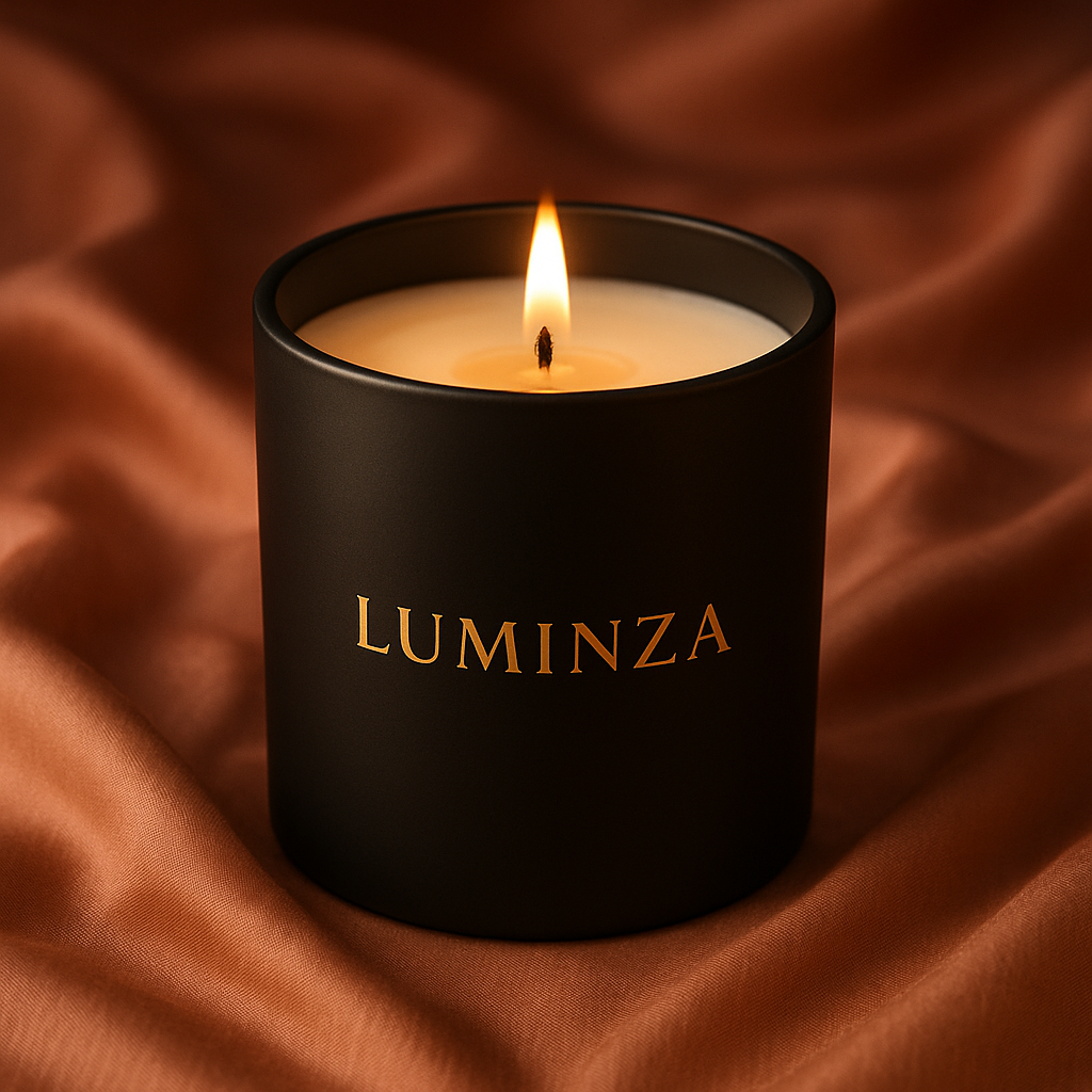 Ignite love and intimacy with our hand-poured soy wax jar candle. Encased in a matte black glass with a golden Luminza finish, it fills your space with a warm romantic glow and fragrances.