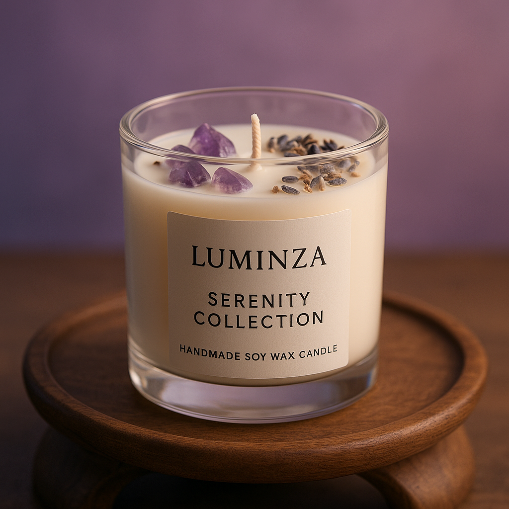 A calming fusion of soy wax, amethyst crystals, and dried lavender. This handcrafted candle is designed to cleanse energy and bring inner peace, perfect for meditation, relaxation, or mindful evenings.